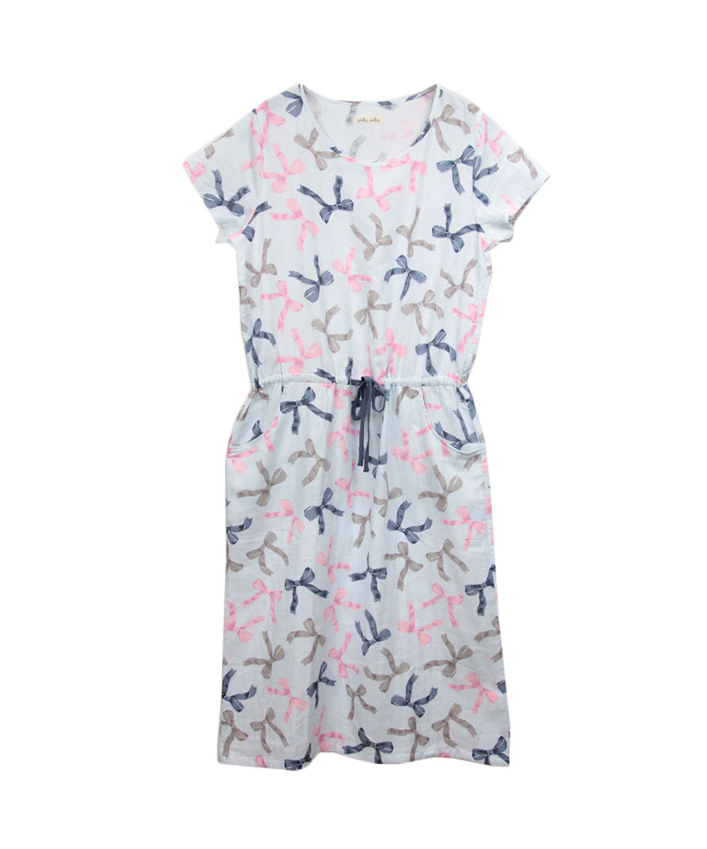 リボンブルーは、3色の大人可愛いリボンが散りばめられたルームウェア。