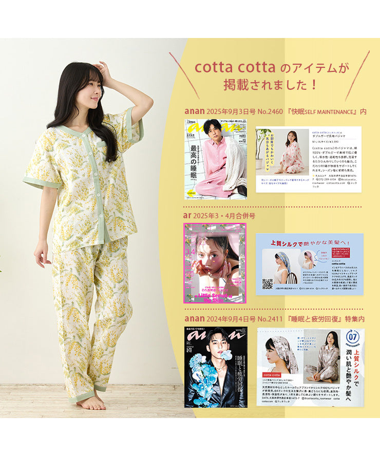 | 品名 | レディース ダブルガーゼ 半袖・長ズボンパジャマ デザイン 上下セット cotta cotta(コッタコッタ) |