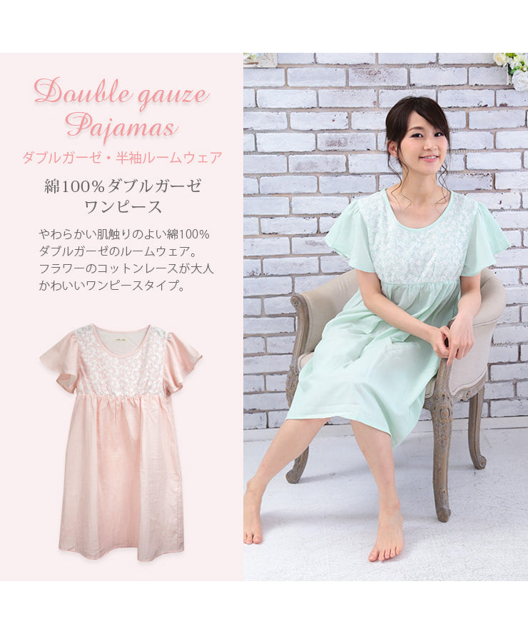レディース パジャマ ネグリジェ 半袖 綿 コットン 夏 [綿100%ダブルガーゼ] f00368